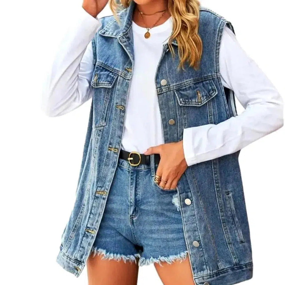 Step into the Pre-millennium with our stonewashed oversized jeans vest from the 2024 Spring Collection for women. Relive the iconic fashion era with a trendy twist that will elevate your trend game.