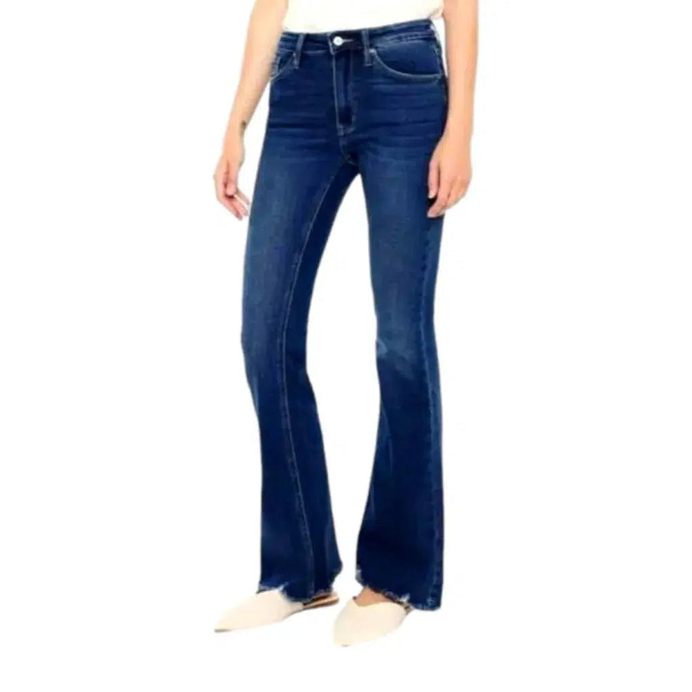 Crafted with attention to detail, these jeans capture the essence of street mode fashion with a touch of sophistication. The bootcut fit, dark-wash, and raw-hem create a bold and street look, while the high-waist design and stretchy fabric ensure a comfortable and flattering silhouette.