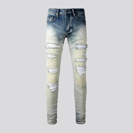 Thin stonewashed jeans for men