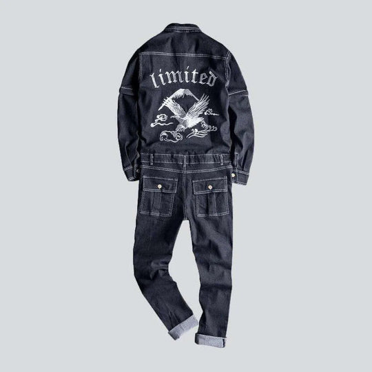 Embroidered denim jumpsuit for men