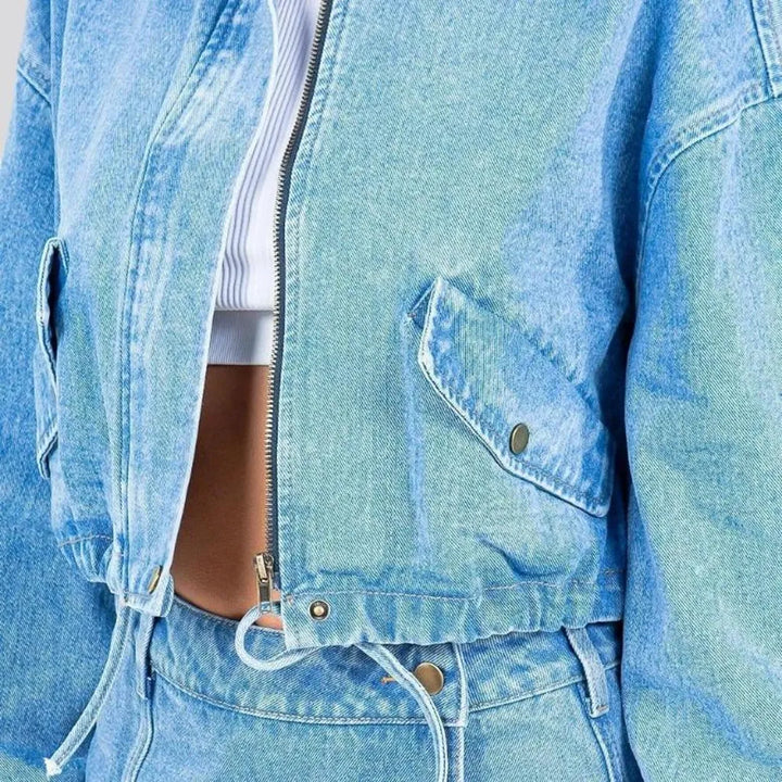 Unveil your unique style this season with our stylish women's denim jacket, crafted to enhance your wardrobe with a blend of comfort and contemporary flair.