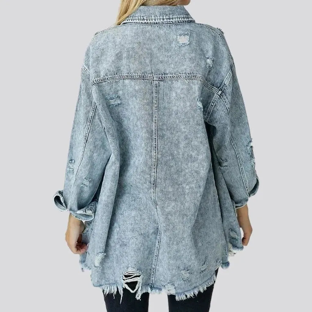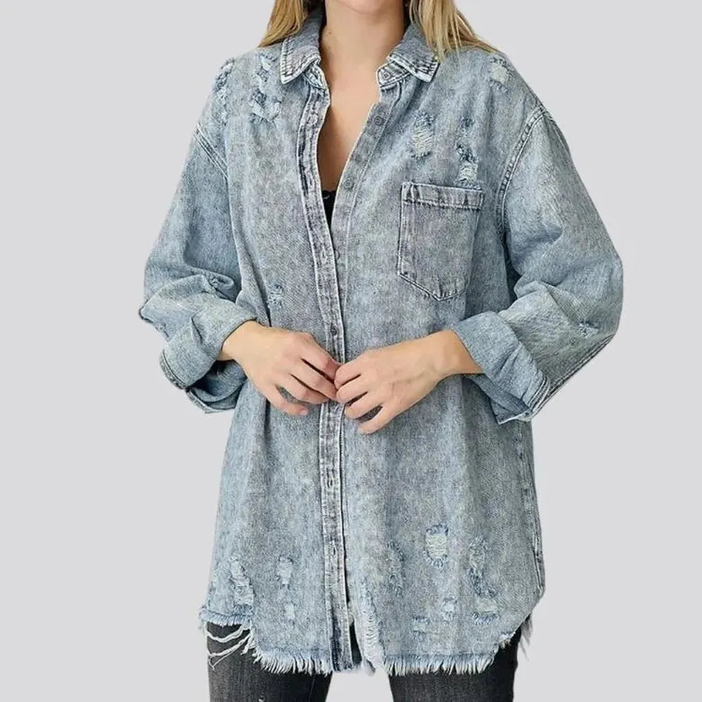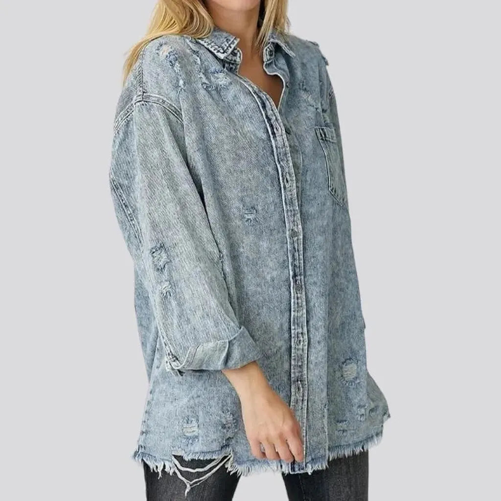 Introducing our grunge-inspired long women's denim shirt from the 2024 Summer Collection, a must-have for every fashion-forward and edgy woman.