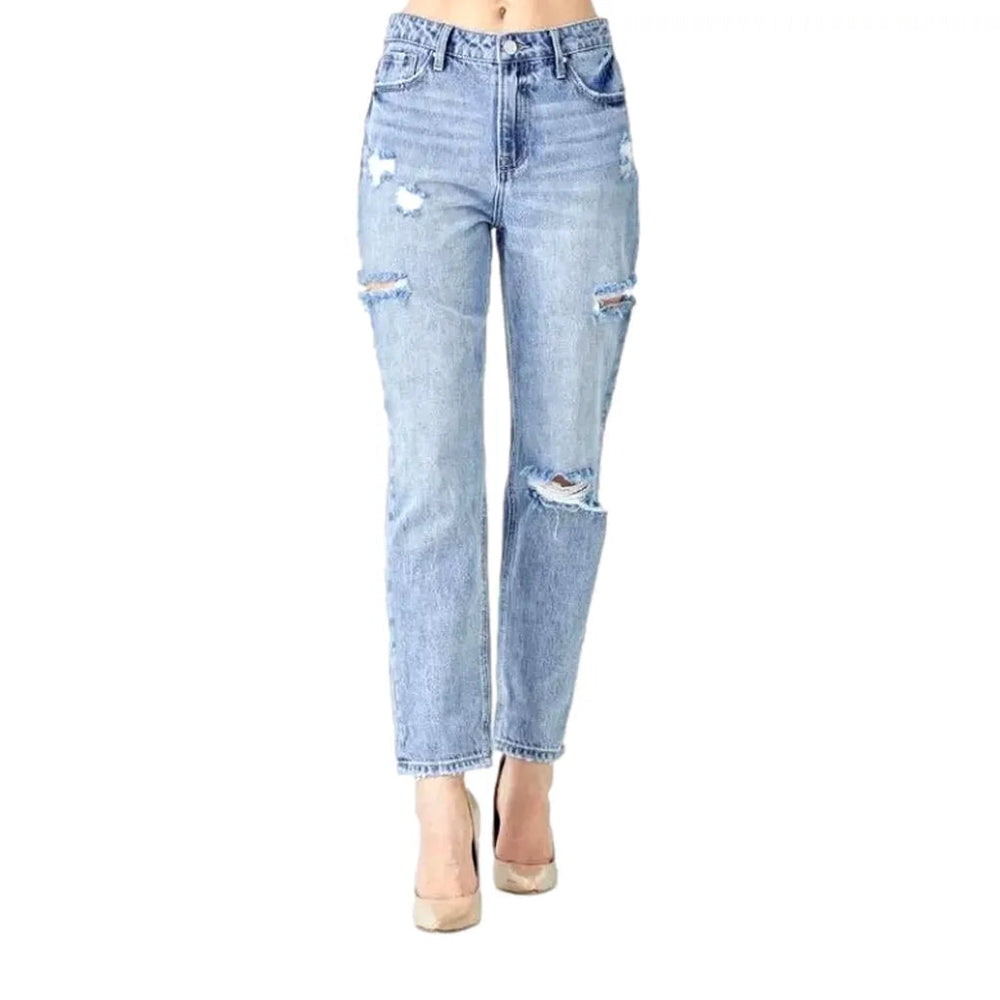 For the fashion-forward moms, the trendsetters, and every woman who loves to stand out. Add these distressed jeans to your collection and embrace your inner grunge goddess. Experience the perfect balance of vintage and modern with our mom distressed jeans from the 2024 Summer Collection. Order yours today!