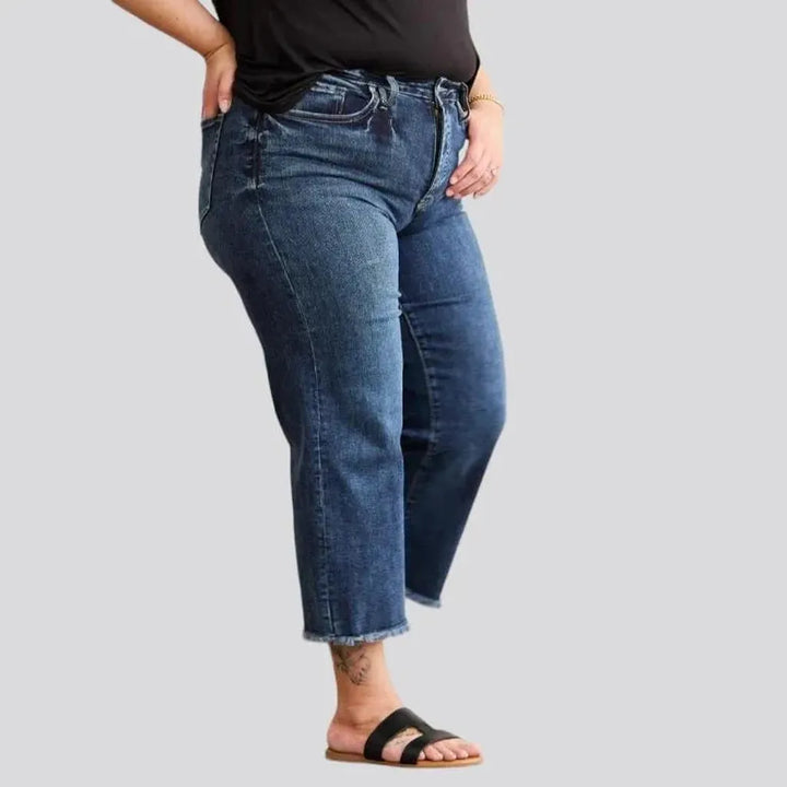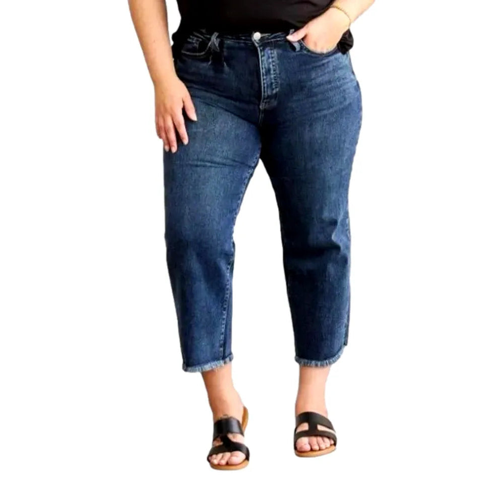 Introducing our sanded, dark-wash straight jeans from the 2024 Summer Collection a classic style for plus-size women who love timeless fashion!