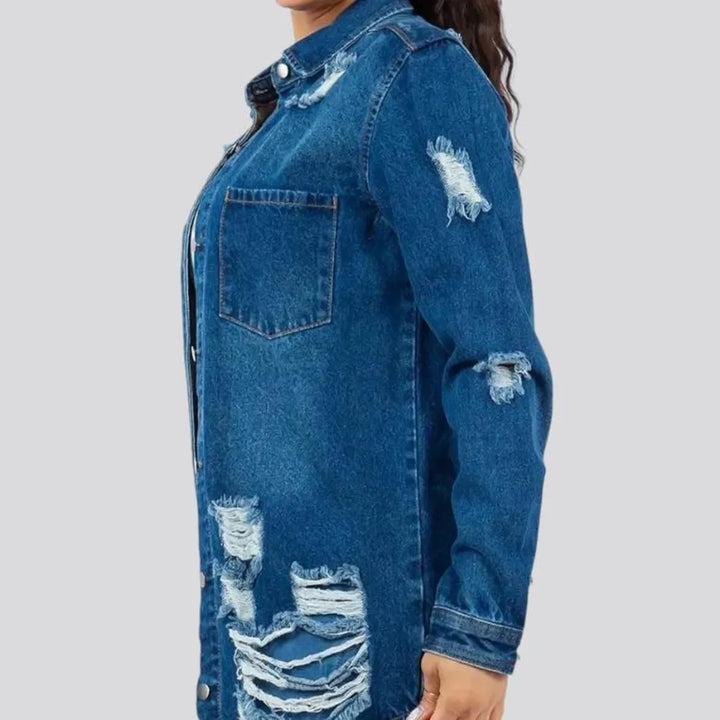 Introducing our fashion-forward women's jeans shirt, perfect for layering this fall and winter, crafted from high-quality cotton denim that not only looks great but offers lasting comfort.