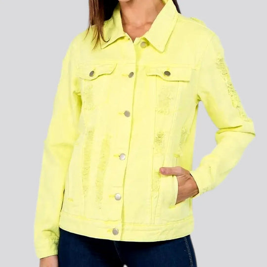 Chic distressed denim jacket for ladies