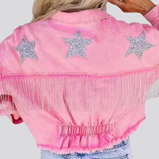 Stars-embroidery women's denim jacket