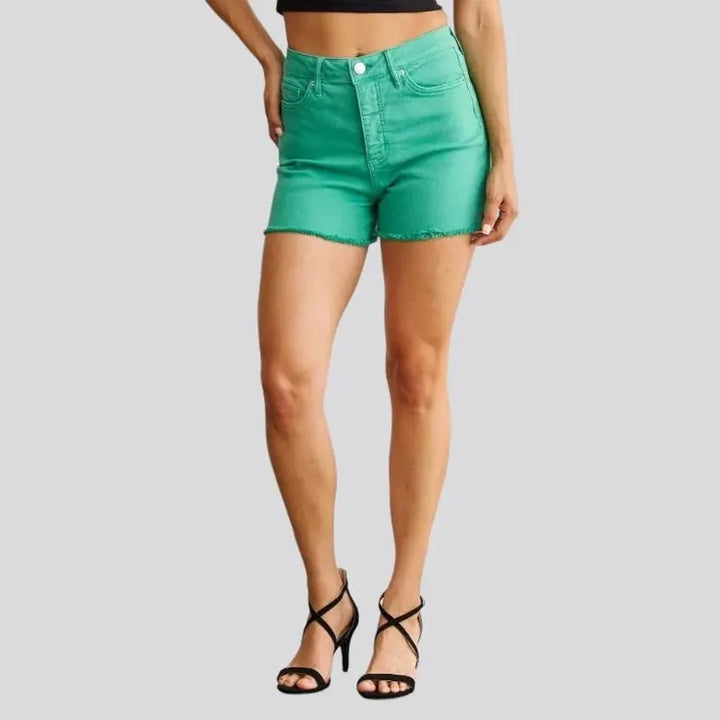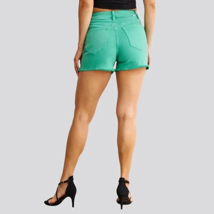 Experience the ultimate combination of style and comfort with our Caribbean-green y2k jean shorts. Elevate your summer looks and secure your pair today!