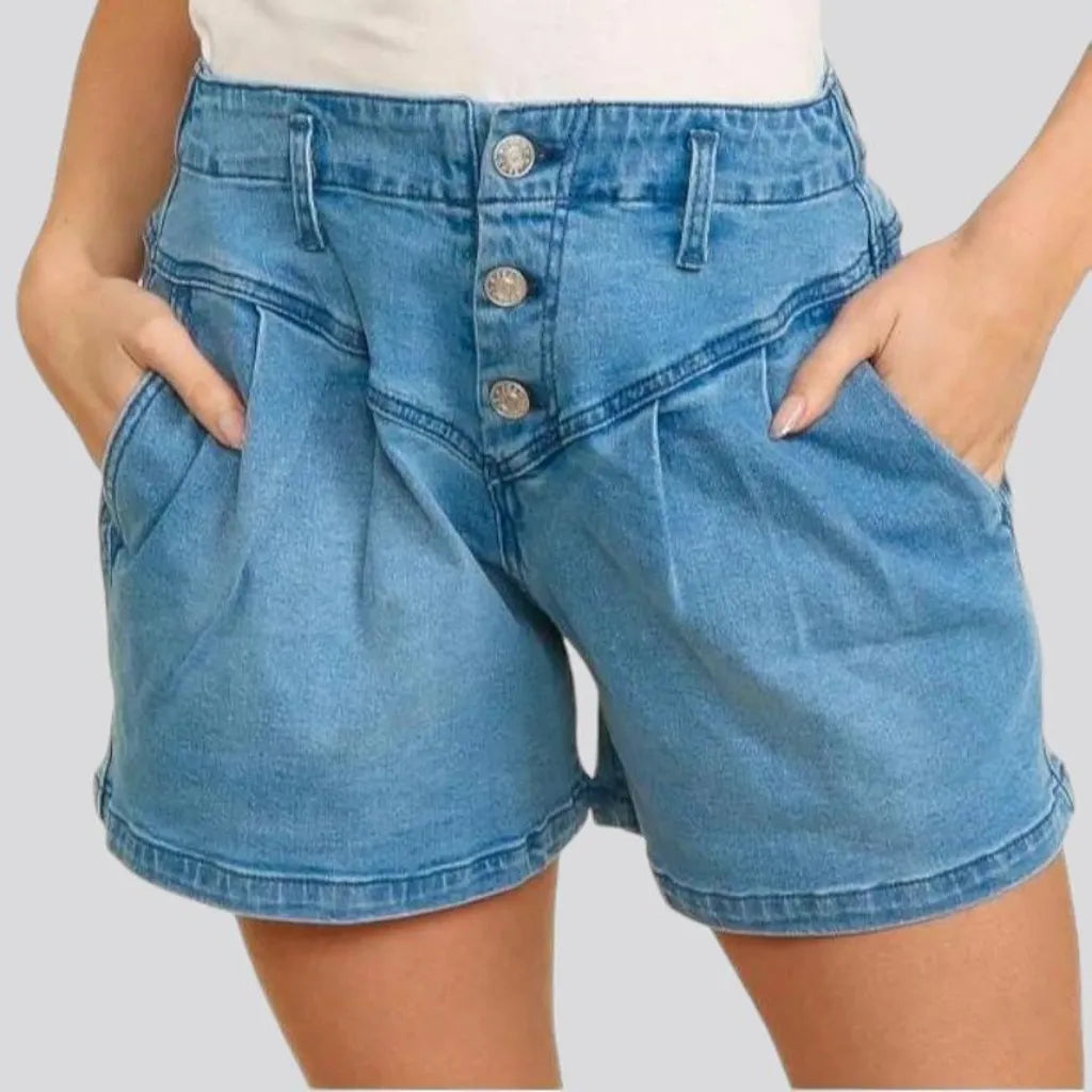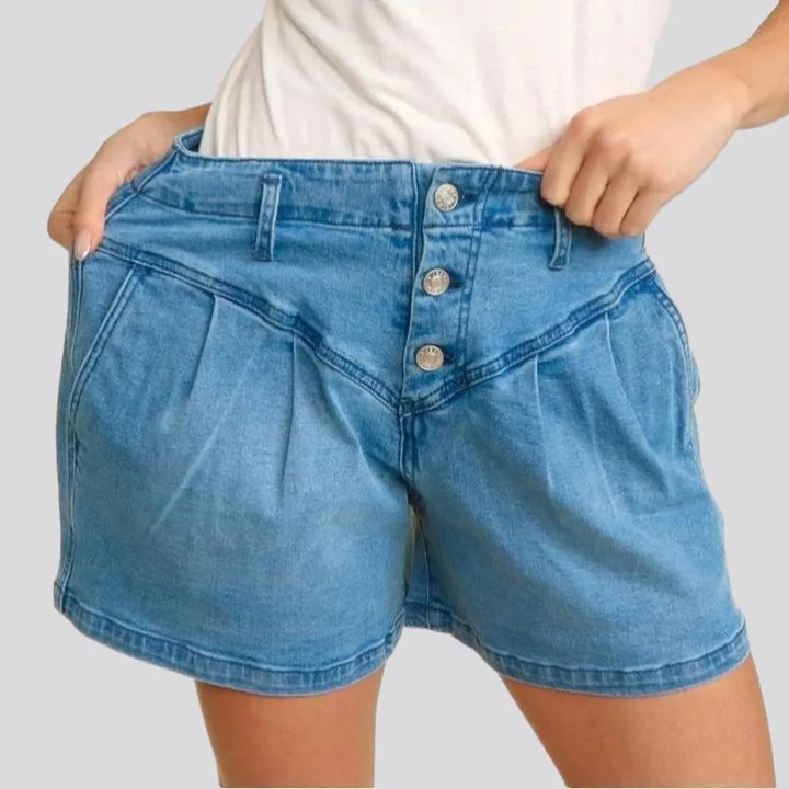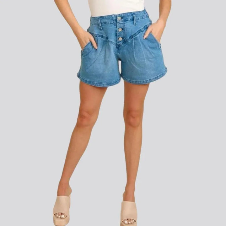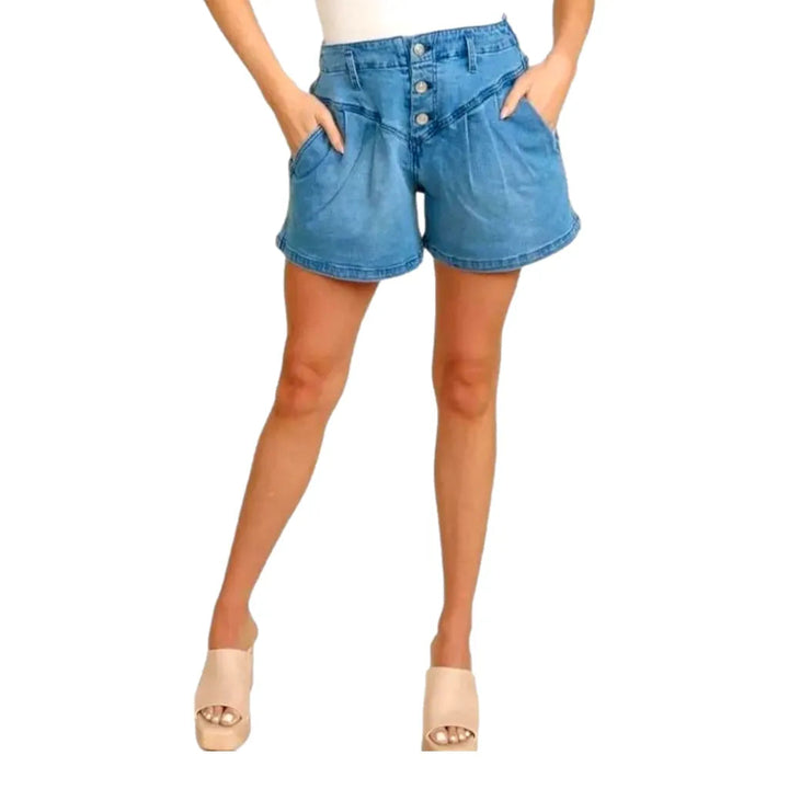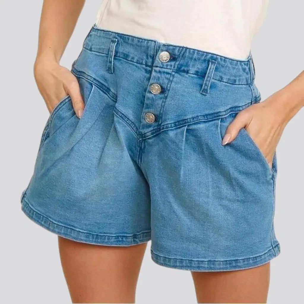 Introducing our medium-wash wide-leg women's denim shorts from the 2024 Autumn-Winter Collection urban style with a touch of sophistication!