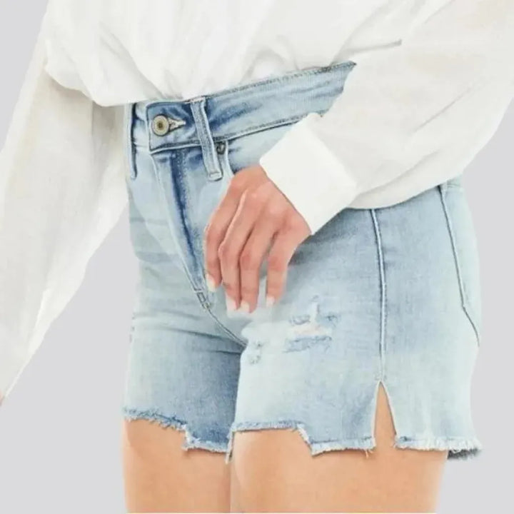 Straight tall-waisted jean shorts for ladies