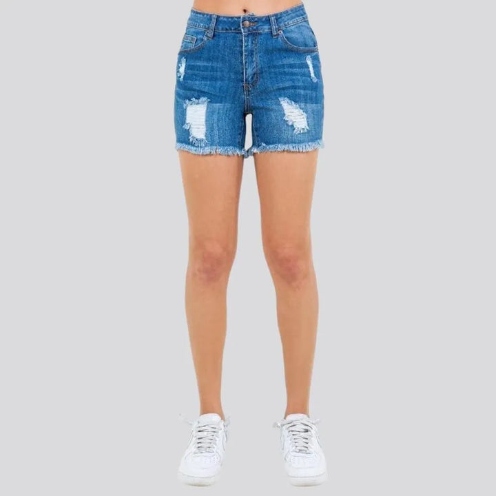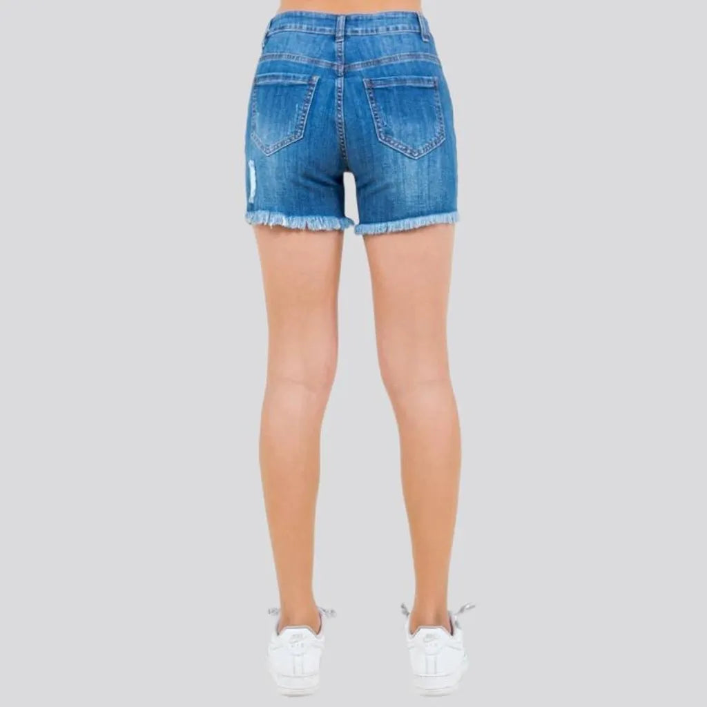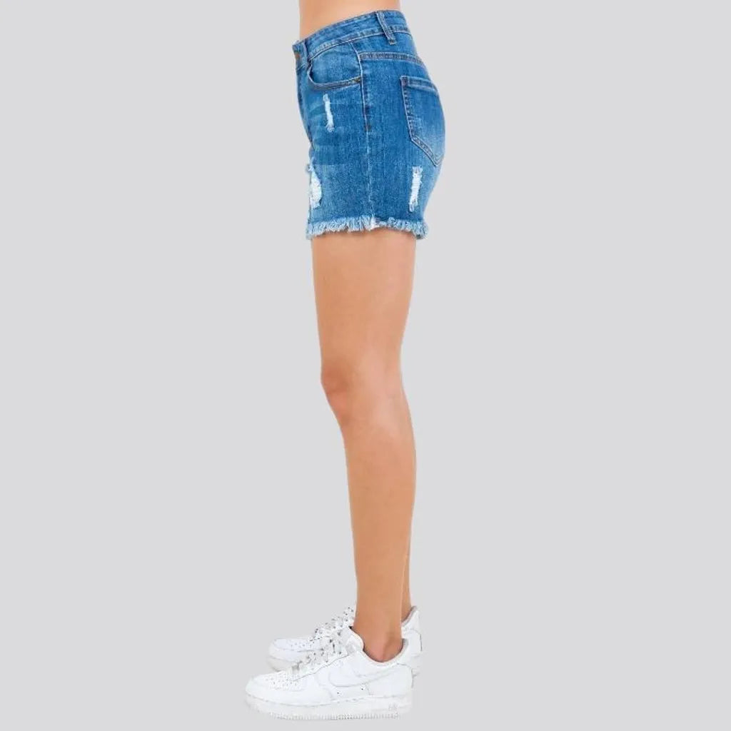 Whiskered skinny denim shorts for women