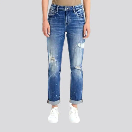 High-waist distressed jeans for women