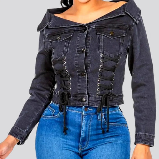 Fashionable crop style denim jacket for ladies